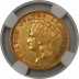 The three dollar Indian Princess Head gold piece was a unique denomination pattern strike minted by the United States government from 1854 - 1889. Designed by James B. Longacre (Chief Engraver of the U.S. Mint), the three dollar gold denomination was immediately unpopular, and many speculate it’s inception revolved around the idea of purchasing larger quantities of postage stamps which cost 3¢ ea. at the time.