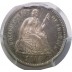 The Seated Liberty Half Dime was a silver five cent denomination piece minted from 1837 - 1873. Designed by Christian Gobrecht, this denomination and pattern underwent several changes throughout its mintage. Initial pieces struck at the Philadelphia Mint in 1837 and the New Orleans Mint in 1838 featured no stars on the obverse design. Furthermore, pieces struck after 1838 had a drapery fold added to Liberty’s elbow. Basic designs for the half dime were the Goddess of Liberty in the seated position facing left on a rock holding a shield brandishing the word ‘LIBERTY’ and a flag in her left hand on the obverse. The reverse featured the denomination ‘HALF DIME’ encircled by a wreath. ‘UNITED STATES OF AMERICA’ surrounds the wreath on the outermost fields. Overall, a total of five varieties were produced in this series. Initial parameters set for the Seated Liberty half dime were: .900 silver, .100 copper composition, a total weight of 1.34 grams featuring a 15.5 mm diameter and a reeded edge. In 1853, the Seated Liberty Half Dimes weight was reduced from 1.34 grams to 1.24 grams under the Act of February 21st, 1853. All other parameters remained the same until the end of the half dimes mintage in 1873.