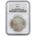 An 1878 San Francisco (S) Morgan Dollar graded MS65 by NGC. This coin displays a deep original luster and excellent well struck details. Gorgeous piece for any Morgan Dollar collection. Total mintage for this date & mintmark: 9,774,000. Morgan Dollars are silver dollars that were minted from 1878-1904, and resumed again in 1921 for that year only. They were the first standardized silver dollars following the production of the Seated Liberty pattern which ended in 1873 due to the Coinage Act of 1873. The Coinage Act of 1873 outlawed all holders of silver bullion to strike their silver into legal tender. In 1878, the Grand Bland Plan otherwise referred to as the ‘Bland-Allison Act’, was enacted to restore the silver dollar. The bill required the US Treasury Department to purchase between 2-4 million dollars worth of silver bullion and coin them into silver dollars. The fineness of these silver dollars became standardized at 412.5 grains of .900 fine silver, .100 copper, a net weight of .77344 ounces pure silver, and a total weight of 26.73 grams ( 0.942873 oz.) Morgan Dollars as they became known, were designed and named after by the United States Mint assistant engraver George T. Morgan. Morgan’s design featured a profiled bust of Liberty on the obverse and an eagle with outstretched wings on the reverse. Furthermore, dates were struck below the bust of liberty and mint marks (when present) are below the wreath on the reverse. George T. Morgan’s last initial (M) can be found at the truncation of the neck. His last initial (M) is also found on the reverse on the left hand loop of the ribbon.Additional Info