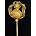 For your consideration is an Antique Art Nouveau 14k Yellow Gold Figural Bust Seed Pearl Hat Stick Pin in excellent pre-owned condition. This hat stick pin features the elegance of the Art Nouveau era with the bust of a woman accented with a single small seed pearl and crafted in fine 14k yellow gold. The stick pin shows light wear on the details and the pin is straight.