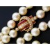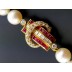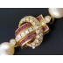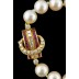 For your consideration is a Vintage Cartier 18k Yellow Gold 1.05 tcw Diamond & 1.00 tcw Ruby Akoya Pearl Necklace in excellent pre-owned condition. This beautiful cultured saltwater Akoya pearl necklace by Cartier features a string of (66) individual pearls with a stunning folding box clasp of 1.05 carats total of diamonds and 1 carat total of rubies set in fine 18k yellow gold. Pearls measures between 8 - 8.5mm in width. Necklace measures 24 inches in length. Total weight: 58.3 grams. Please view our photos for additional information.