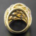 For your consideration is a David Yurman 18k Yellow Gold .50 tcw Pave Diamond 25mm Lattice Dome Ring in pre-owned condition. This ring shows signs of wear and features David Yurman's dome shaped lattice pattern with pavé diamonds totaling .50 carats crafted in fine 18k yellow gold. Ring measures 25mm wide. Shank graduates from 5.5mm to 9mm in width. Weighs 21.5 grams. Will fit a size 7.25 finger. Please view our photos for additional information.