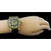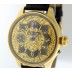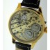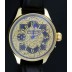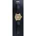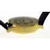 For your consideration Jaeger LeCoultre pocket watch movement (manual mechanical) converted into a 47mm (not including crown) "Marriage" wrist watch. The watch features a black and gold art nouveau style face with large font Arabic numerals with seconds sub dial. Glass back showing watch movement, and a large crown in a Gold tone case. Strap is black leather that will fit up to a 9" wrist. Very good condition (pre owned) with no major scratches or blemishes. .