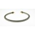 For your consideration is a vintage signed David Yurman Classic Cable 14k Yellow Gold & Sterling Silver Cuff Bracelet in very good pre-owned condition. This cuff designed by David Yurman is a classic cable features 14k yellow gold end pieces with the main cuff crafted in fine sterling silver. The cuff shows average signs of handling/wear throughout with a lightly worn to worn polished finish and no major cosmetic issues.