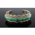 For your consideration is an Navajo Native American Herman Hoskie Sterling Silver Turquoise Inlaid Cuff Bracelet in very good pre-owned condition. This cuff designed by an unknown maker features an inlaid turquoise with synthetic opals and twisted rope accents crafted in fine sterling silver. The cuff shows light to average handling/surface wear with some oxidation and no major cosmetic issues.