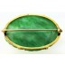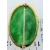 Vintage carved Green Jade Jadeite 14k yellow gold brooch. 39.5mm x 27.5mm. Great pre owned condition. Carving had 2 holes seen in the picture and video.