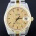 For your consideration is a Tudor Prince Oysterdate Reference # 74033 34mm Two Tone Stainless Steel Gold Tone Linen Dial Automatic Watch in working condition. This watch features a 34mm stainless steel case (not including the crown), gold colored fluted bezel, Gold tone linen dial with date fixed at the 3 o'clock position and tapered two tone gold and stainless steel bracelet that will currently accommodate a 7" inch wrist. Watch has been lightly used, and is in running condition. Please view our photos for additional information.